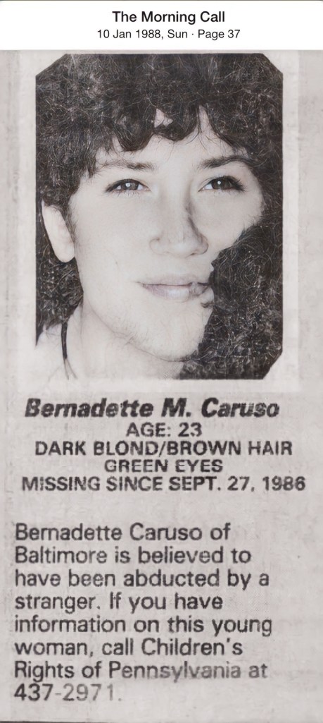 I’ve said it before I know other creators and family members have said it, the only way to get this case to move forward is either to get public pressure on the Baltimore County attorney general’s office, generate new leads, or both. The only way we can do that is by keeping Bernadette’s face and name in the public.