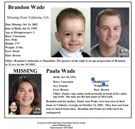 Paula McGarth Wade and her son Brandon Wade vanished from Valdosta Georgia in October 2002.
